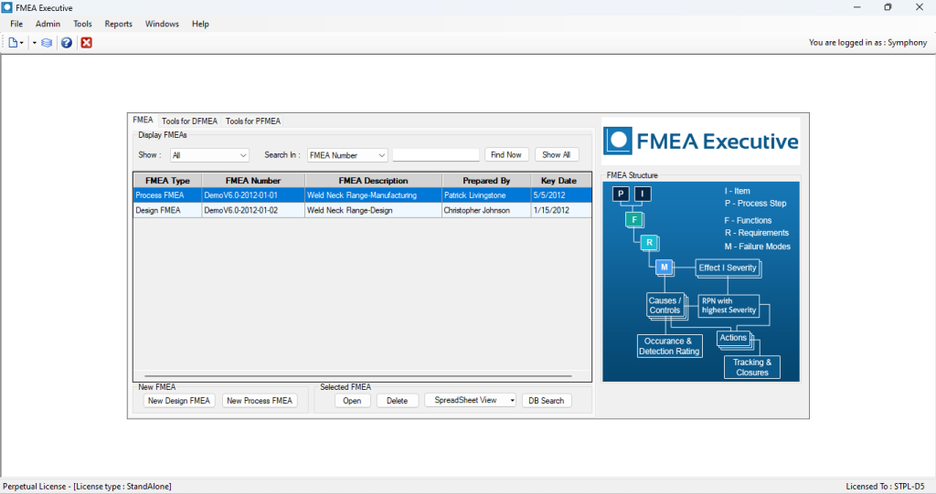 FMEA Executive is a .NET application with a configurable backend that supports: